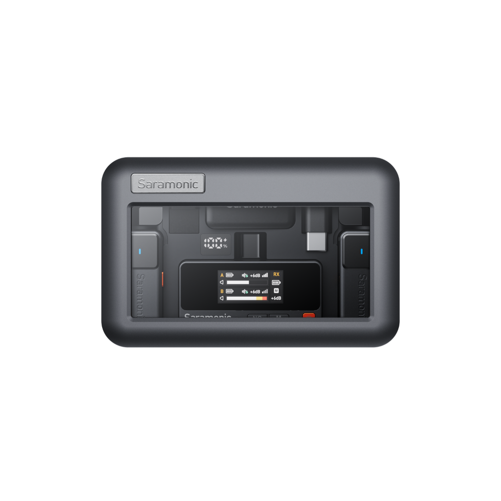 Mikrofon tek şarjla 10 saate kadar, ekran açık şekilde alıcı ise 6,5 saate kadar kesintisiz çalışır. Üstelik kullanım sırasında şarj desteği de sunar. Şarj kutusu, tüm üniteleri 1,5 kez yeniden şarj edebilir ve toplamda 48 saate kadar kullanım süresi sağlar. LED göstergeler sayesinde pil seviyelerini kolayca takip edebilirsiniz.